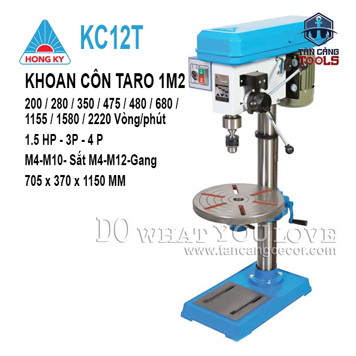 - Máy Khoan Bàn Hồng Ký KC12T 1.5HP ( Khoan Côn Taro, Điện 3 Pha ).