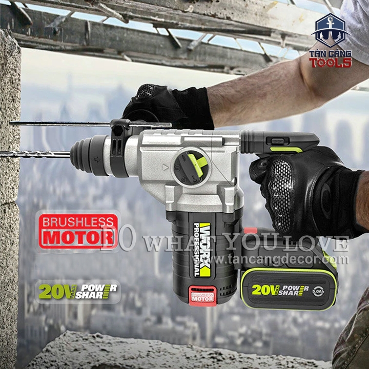 Combo Máy Khoan Bê Tông Dùng Pin Worx 20V WU388 ( Thân Máy, 2 Pin 4.0Ah, 1 Sạc )