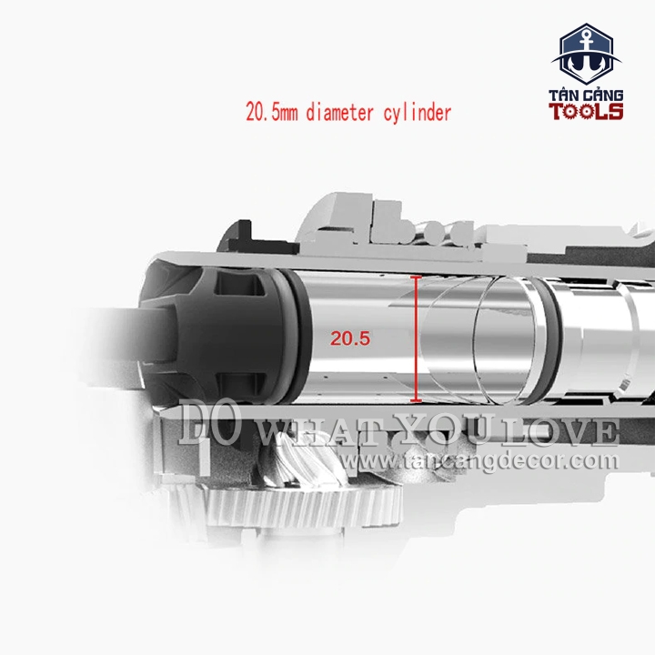 Sử dụng cấu trúc liên kết tay quay. Lực đập lên đến 2.2 J , hơn hẳn các dòng sản phẩm cùng phân khúc chỉ có 1.7 J.