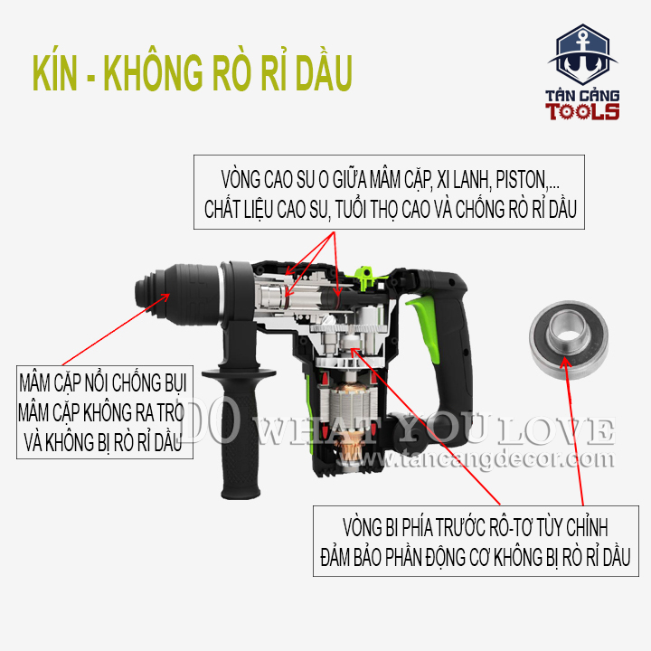 Thiết kế với gioăng xi lanh cao cấp mang lại hiệu quả cao trong việc chống bụi do đó nâng cao thêm 50% tuổi thọ của máy.