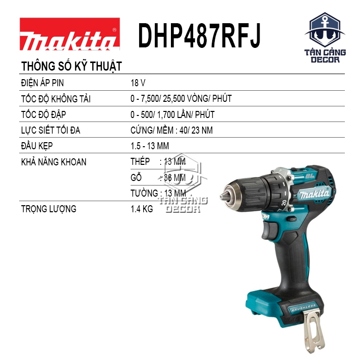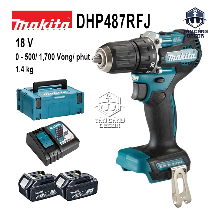 - Máy Khoan Động Lực Dùng Pin Makita 18V DHP487 là dòng thiết bị hỗ trợ chuyên dụng rất được ưa chuộng và sử dụng rộng rãi bởi người lao động với khả năng thực hiện và đáp ứng rất tốt và phù hợp với các xưởng nội thất gỗ.