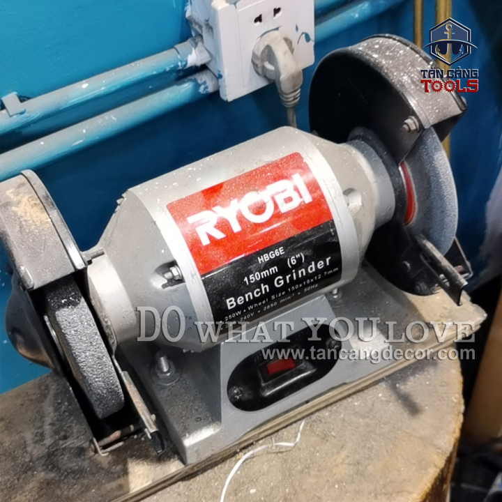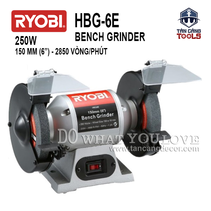 THÔNG TIN SẢN PHẨM: Xuất Xứ : Trung Quốc. Thương Hiệu : RYOBI – HÀNG CHÍNH HÃNG Mã Hiệu : HBG-6E Chất Liệu : Gang Đúc Nguyên Khối – Hợp Kim Nhôm. Công suất : 250W Sử dụng điện: : 220V Tốc độ không tải : 2.580 vòng/phút Sử dụng lưỡi : 150 x 19 mm Đường kính lỗ : 20 mm Trọng Lượng : 9.0 kg Trang Bị 2 Đá Mài : 1 Đá Mài Thô – 1 Đá Mài Mịn. PHỤ KIỆN KÈM THEO : nắp bảo vệ, thân máy. Bảo Hành Chính Hãng 12 Tháng.