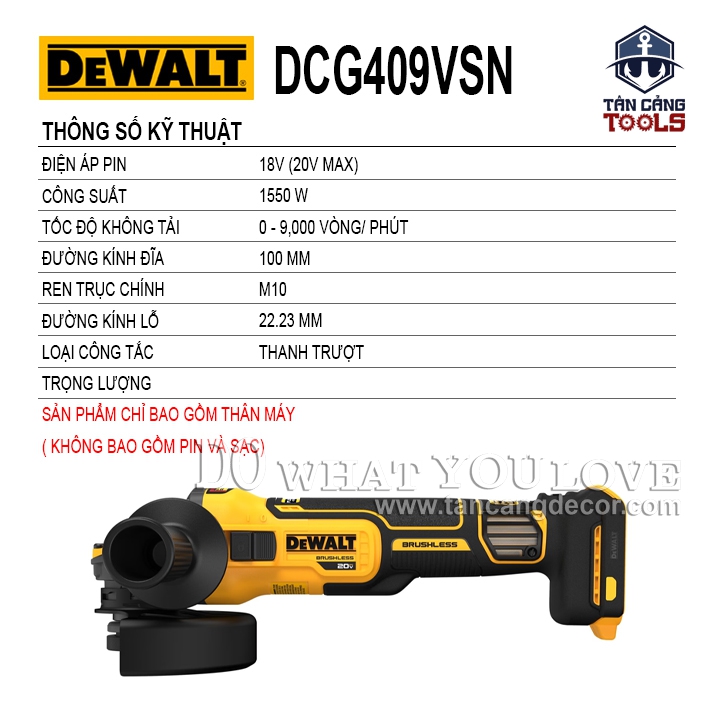 - Máy Mài Góc 100 mm Dùng Pin Có 6 Cấp Điều Tốc DeWalt 20V DCG409VSN là một công cụ điện chuyên dụng để đáp ứng cho những công đoạn mài mòn, cắt và đánh bóng các vật liệu cứng như bê tông, gạch, kim loại, gỗ…
