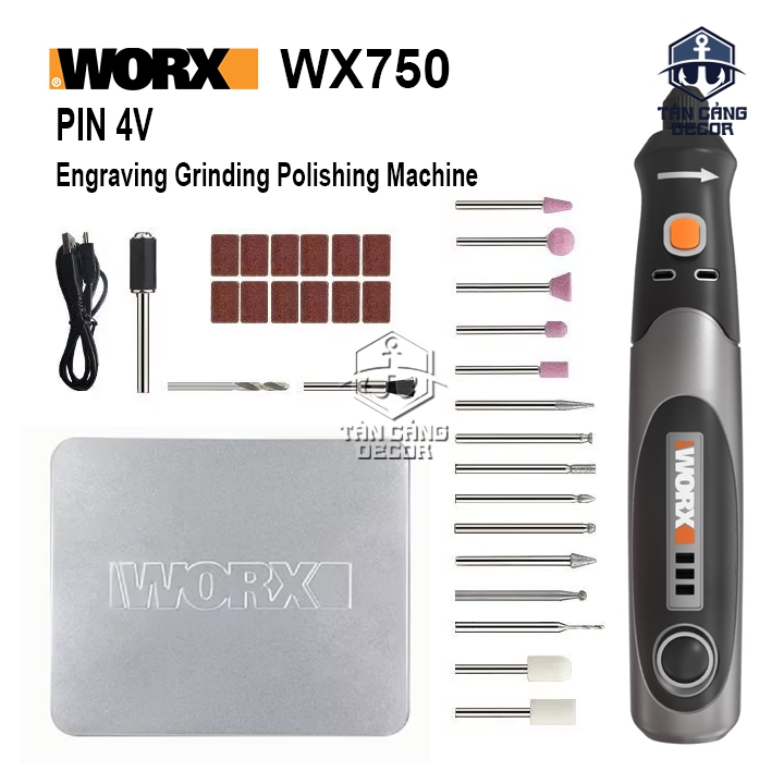 - Máy Mài Khuôn Dùng Pin 4V Worx WX750 là một máy mài điện mini đa năng, thường được sử dụng cho các công việc chạm khắc, đánh bóng và mài các chi tiết nhỏ trên nhiều loại vật liệu như gỗ, kim loại, nhựa và đá.