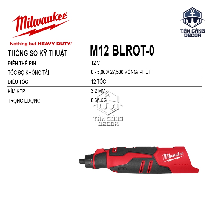 Máy Mài Thẳng, Mài Khuôn Dùng Pin Milwaukee M12 BLROT-0 (Thân Máy)