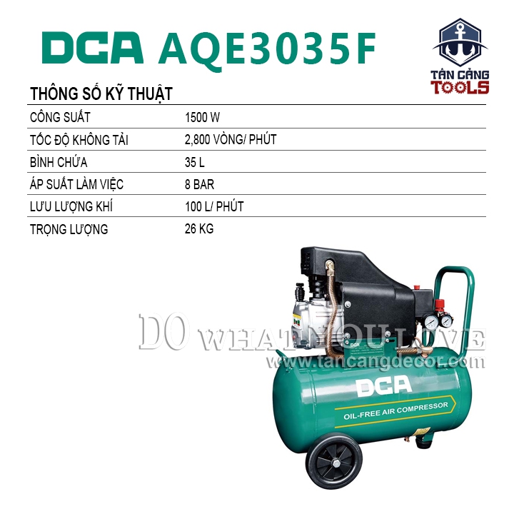 - Máy Nén Khí Có Dầu 35 Lít 1500W DCA AQE3035F với thiết bị có thiết kế nhỏ gọn.