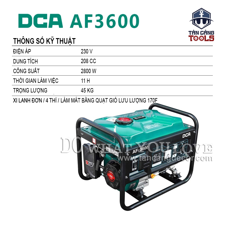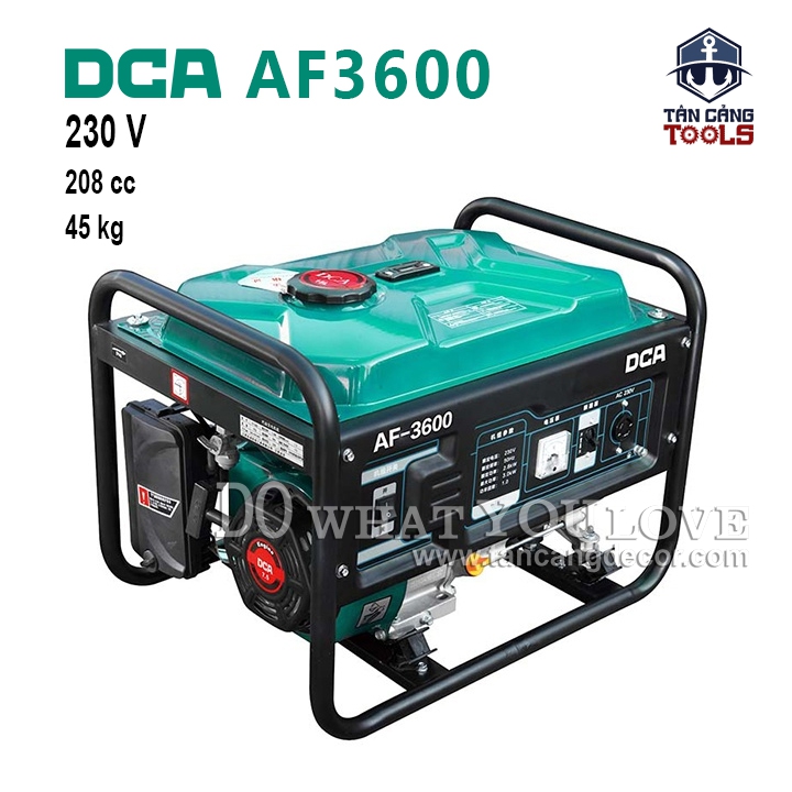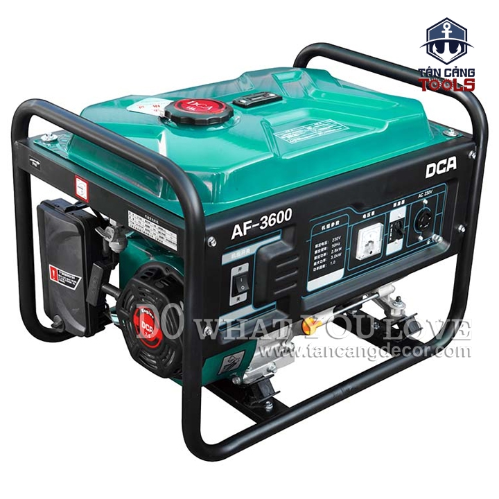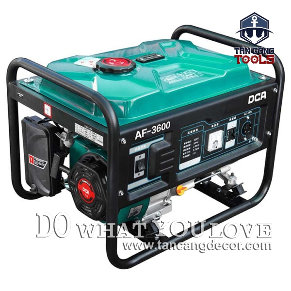 - Máy phát điện xăng AF3600 của DCA có công suất đầu ra 2800W cung cấp đủ năng lượng để cấp nguồn cho các thiết bị và máy móc của bạn.