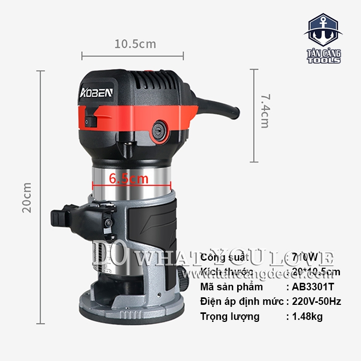 Máy phay AOBEN có đế nhựa trong suốt nên giúp bạn có thể nhìn được đường cắt rõ ràng. Công suất của máy là 710W, đảm bảo khả năng hoạt động rất mạnh mẽ, cho phép bạn thực hiện các công việc đánh cạnh gỗ, nhôm, alu, mica một cách nhanh chóng, chuẩn xác.