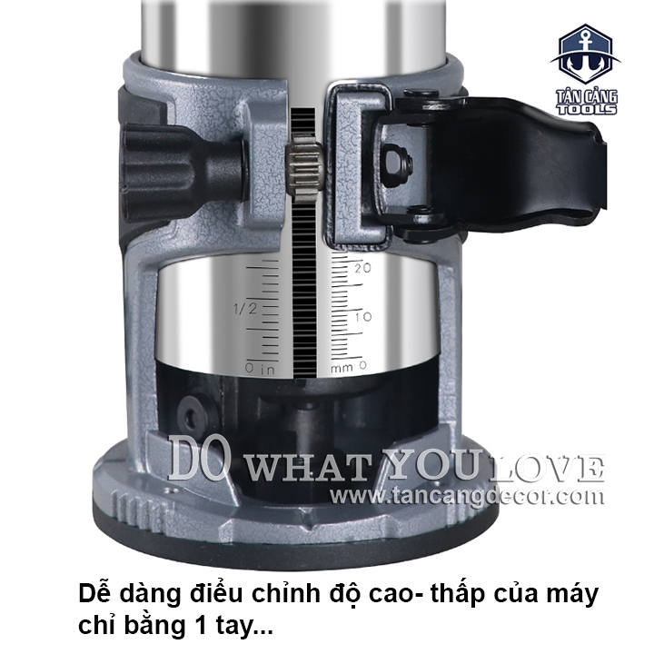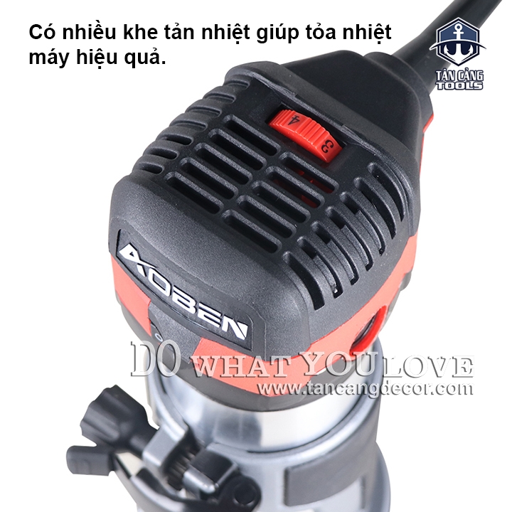 Ngoài ra, với cơ chế hoạt động gồm 6 cấp độ điều chỉnh vòng quay giúp bạn linh hoạt trong việc đánh cạnh gỗ, alu , vật liệu khác.