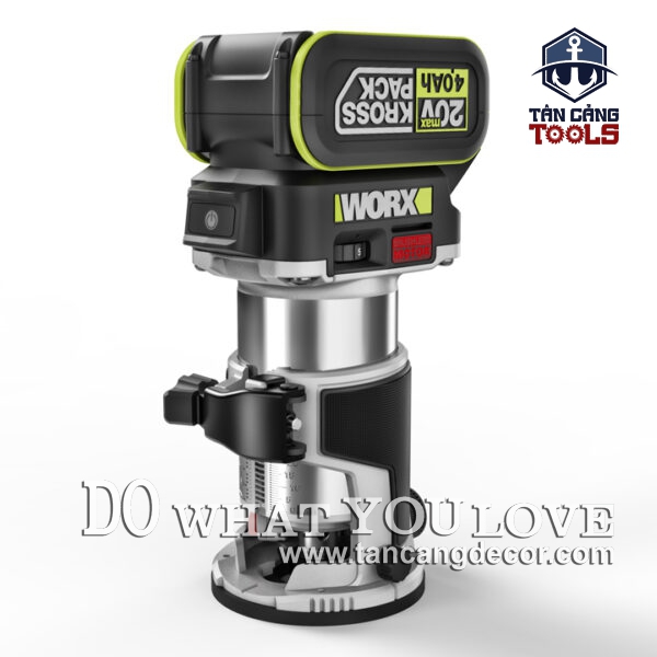 - Máy Phay Dùng Pin 20V Worx WU560 sử dụng động cơ không chổi than siêu bền, làm việc bền bỉ và liên tục. Sản phẩm thích hợp với những anh em làm nội thất đi công trình.