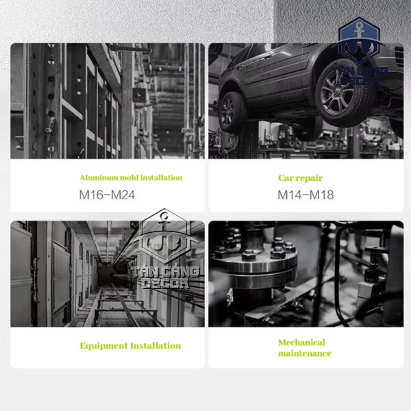 + Đầu bu lông tiêu chuẩn : M10~M27 - Trang Bị Công Nghệ Mở Ốc Auto Stop – Tự Động Dừng Khi Ốc Đã Được Nới Lỏng