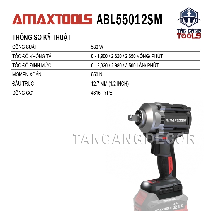 - Máy Siết Bu Lông Dùng Pin 21V Amaxtools ABL55012SM là công cụ lý tưởng cho công việc siết bulong, vặn ốc trong công nghiệp, xây dựng, và gia đình.