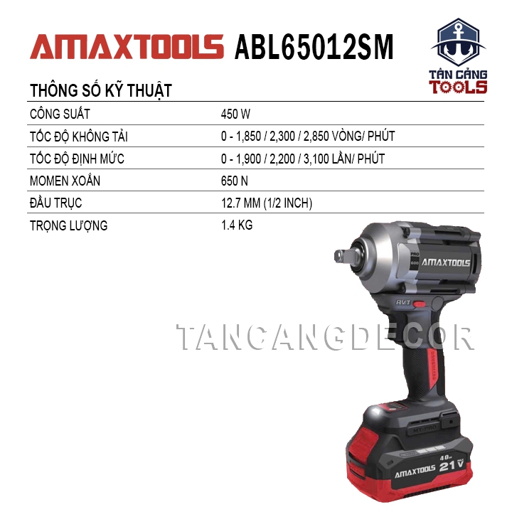 - Máy Siết Bu Lông Dùng Pin 21V Amaxtools ABL65012SM là dòng sản phẩm mạnh, ổn định, đặc biệt phù hợp cho các công việc siết và tháo lắp ốc vít trên nhiều loại vật liệu.