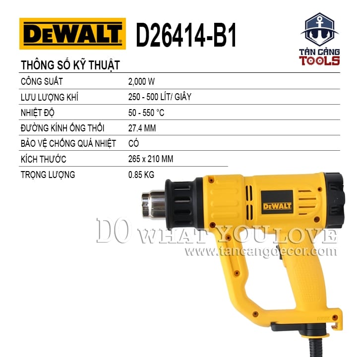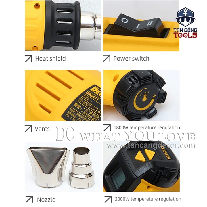 - Máy thổi hơi nóng sử dụng cực kỳ đơn giản bằng công tắc cấp được thiết kế ngay trên thân máy. Hơn nữa, DeWalt D26414 còn trang bị công suất lên đến 2000W giúp bạn dễ dàng trong việc kết dính, lột sơn, bắn keo các vật liệt nhờ hệ thống phun nhiệt hay gió một cách ổn định.