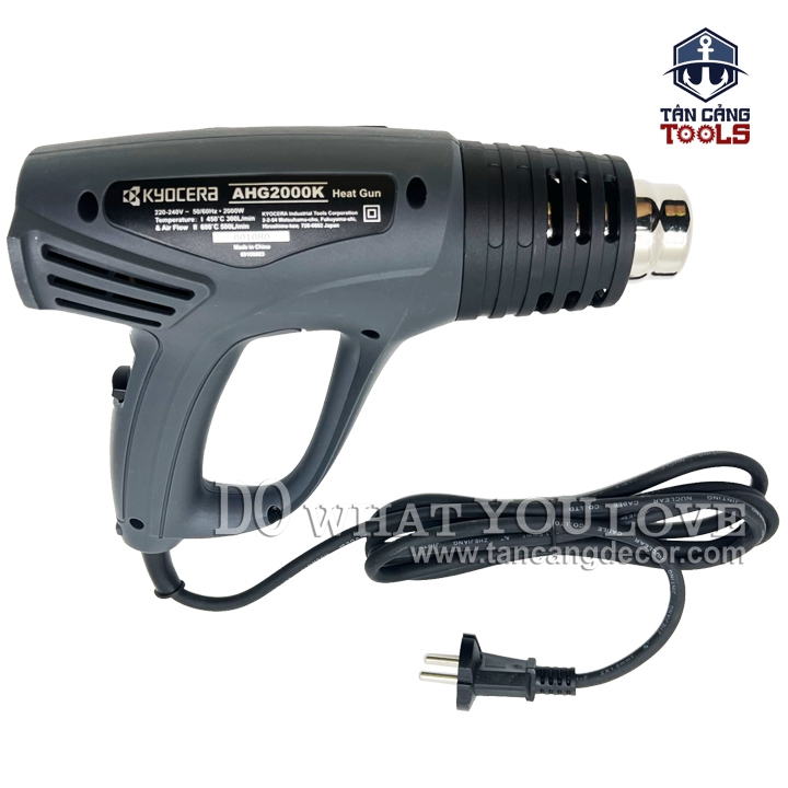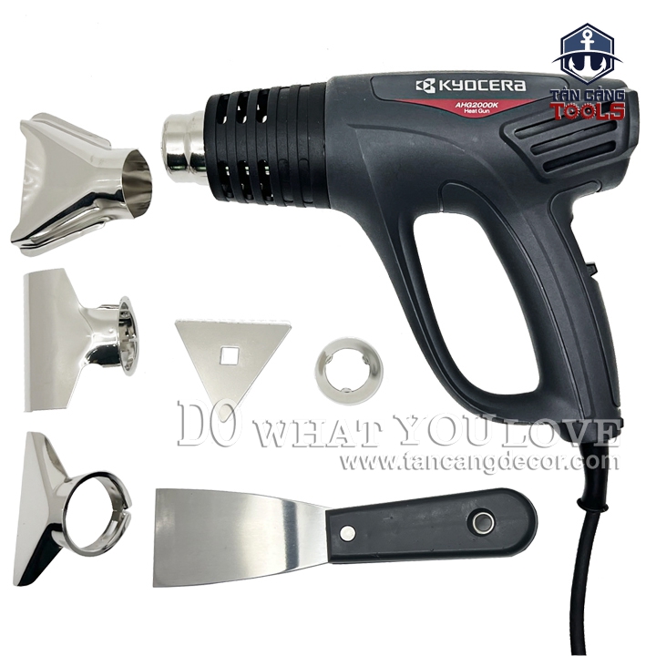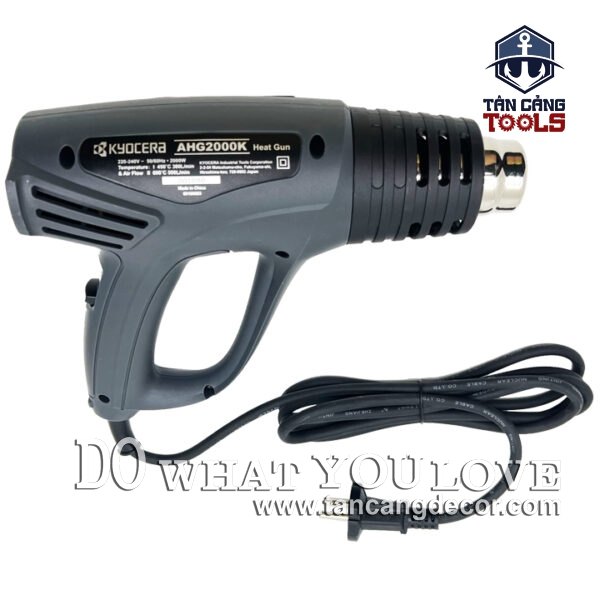 - Máy Thổi Nhiệt 2 Cấp Độ Kyocera AHG2000K 2000W sử dụng để làm tan chảy hoặc kết dính các vật liệu với nhau. Hoặc dùng để gỡ bỏ các loại vật liệu khi chúng không còn sử dụng được nữa. Thích hợp để sử dụng trong sửa chữa, lắp ráp trong gia đình hoặc sử dụng trong sản xuất công nghiệp, cửa hàng dán xe máy, quán ăn…. như làm co màng nhựa, lột bỏ lớp sơn, nhựa cũ, uốn cong mica, rang,làm nóng thực phẩm, vật liệu….