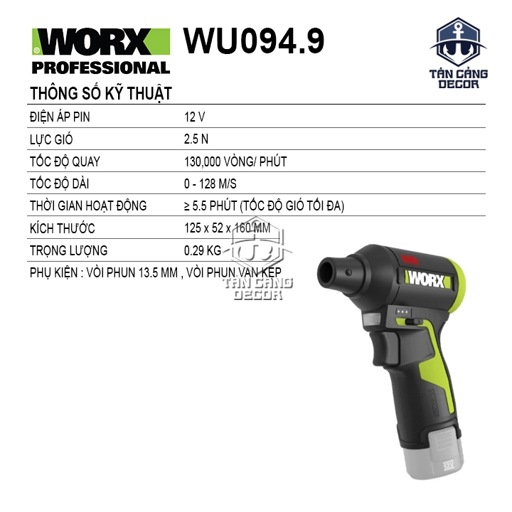 Máy Thổi Phản Lực Dùng Pin 12V Worx WU094 ( Thân Máy )