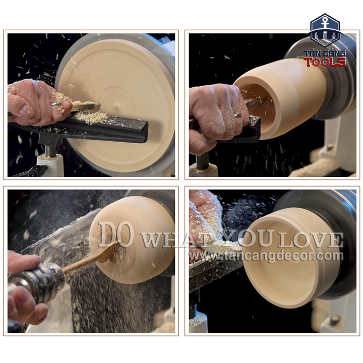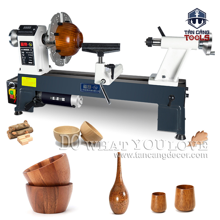 - Với kích thước nhỏ gọn và trọng lượng lớn, máy tiện để chế biến gỗ mạnh mẽ và độ ổn định cao.