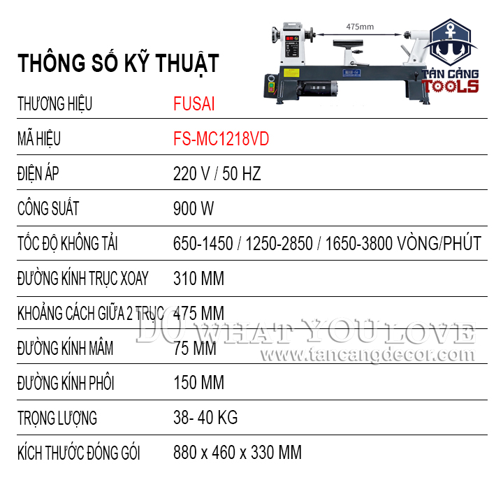 Máy Tiện Gỗ Fusai FS-MC1218VD 475 Mm 900W