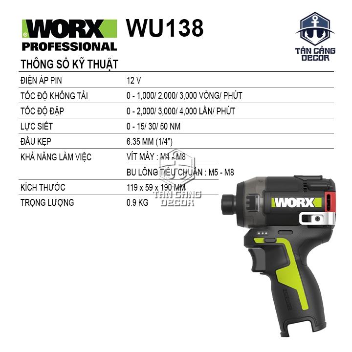 Máy Vặn Vít Búa Dầu Dùng Pin 12V Worx WU138