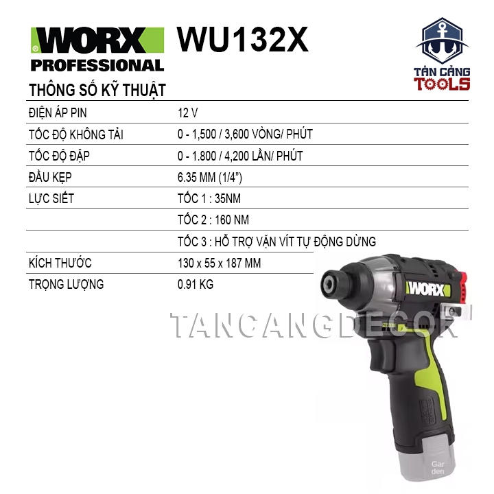 - WU132X là một model nổi bật của thương hiệu Worx Green thuộc tập đoàn POSITEC. Worx Green là thương hiệu dụng cụ điện cầm tay thuộc phân khúc cao cấp cho các ngành công nghiệp và xây dựng yêu cầu cường độ làm việc liên tục và chất lượng cao.