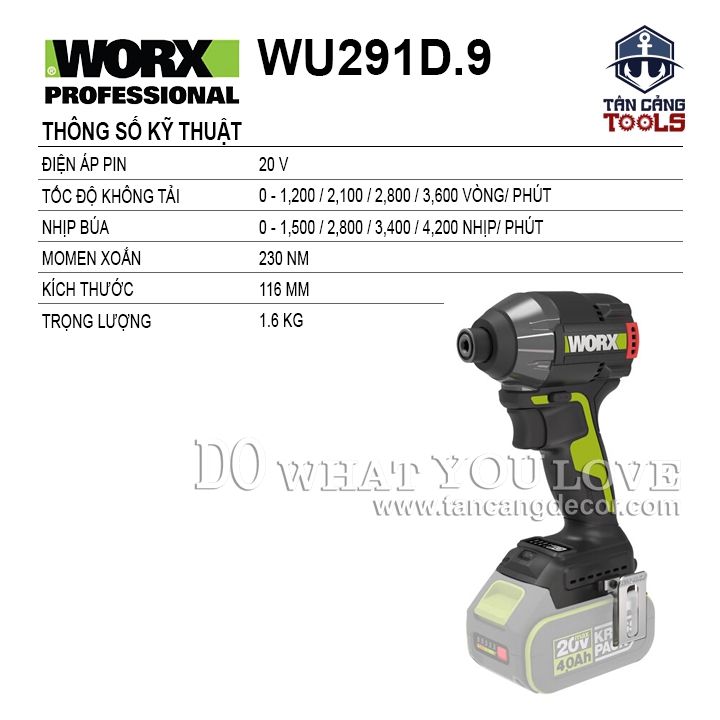 - Máy Vặn Vít Dùng Pin 20V Worx WU291D.9.