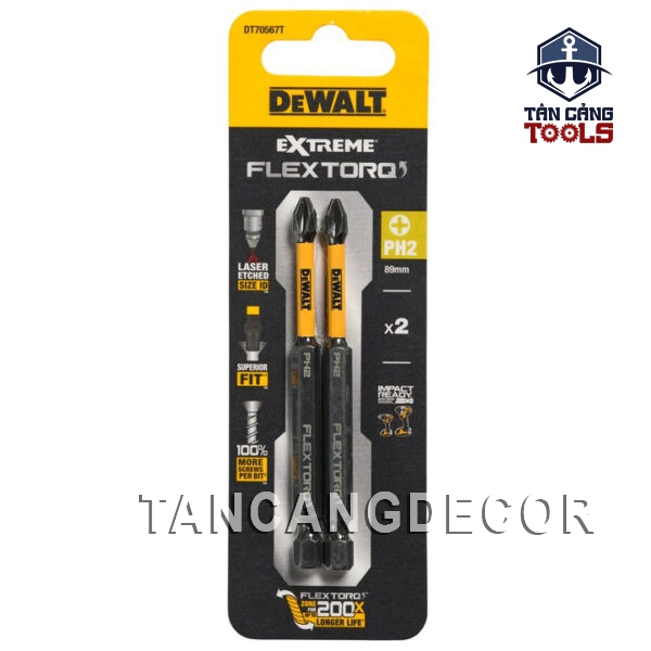 - Mũi Bắt Vít FlexTorq PH2 89 mm Dewalt DT70567T được ứng dụng công nghệ thép HRC cho độ bền gấp nhìu lần so với mũi thông thường.