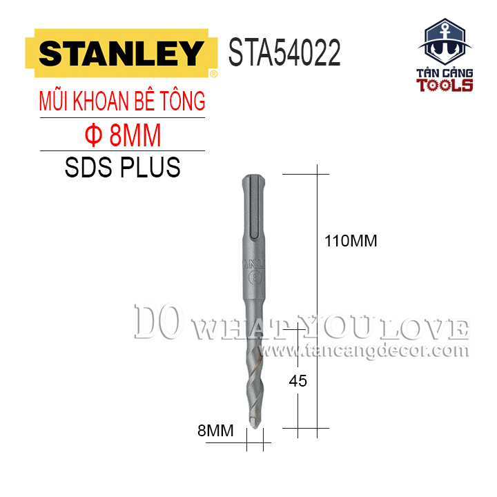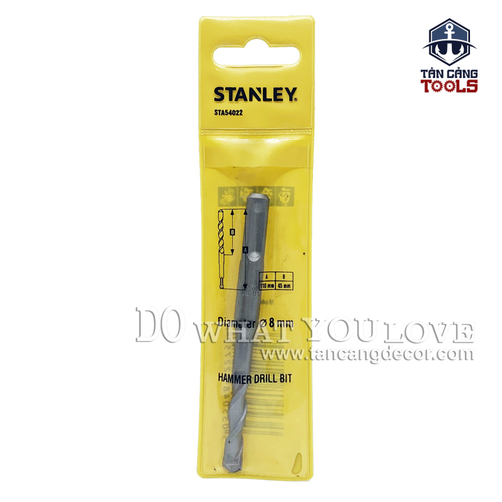 - Mũi Khoan Bê Tông Gài SDS 8 mm x110 mm Stanley STA54022 chuyên dụng khoan trên các vật liệu như tường, bê tông…Sử dụng với các dòng máy máy khoan bê tông thông dụng trên thị trường.