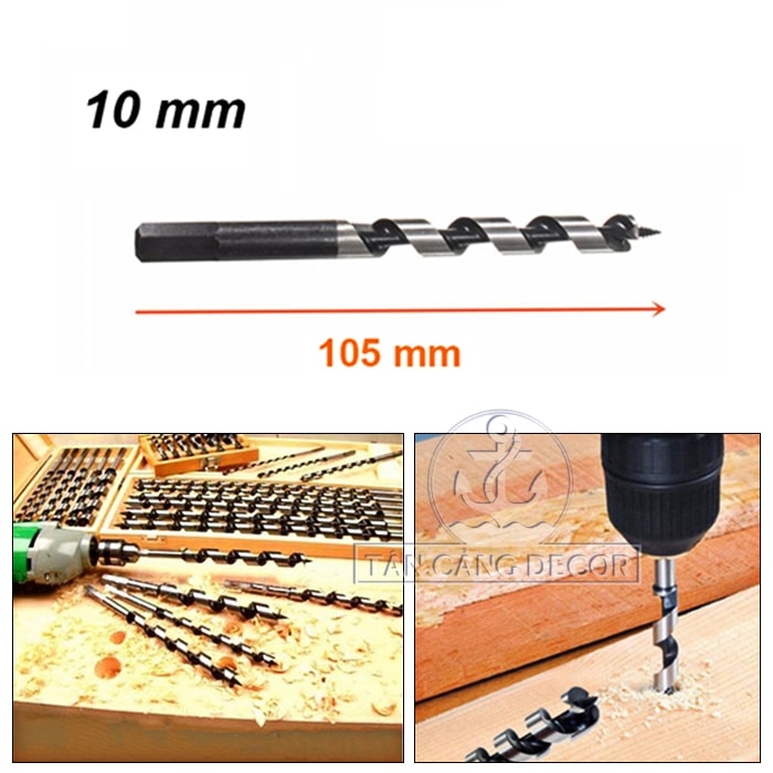 - Mũi khoan chuyên dụng để khoan gỗ cứng, bước thưa dài giúp thoát phôi gỗ nhanh.