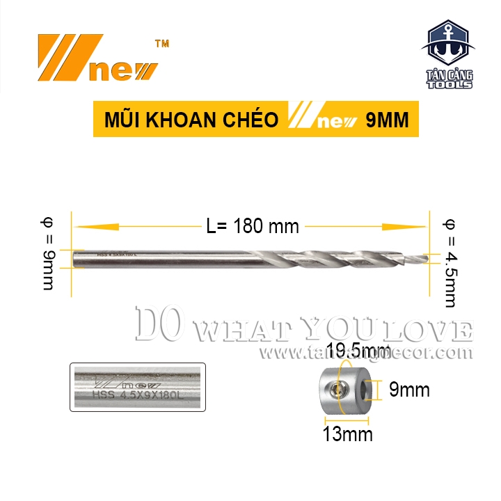 BỘ SẢN PHẨM BAO GỒM: + 1 x Mũi khoan chéo 9mm (3/8″) + 1 x lục giác + Vòng giới hạn 9mm (3/8 “)