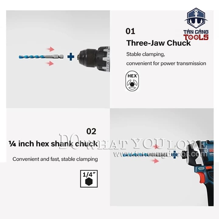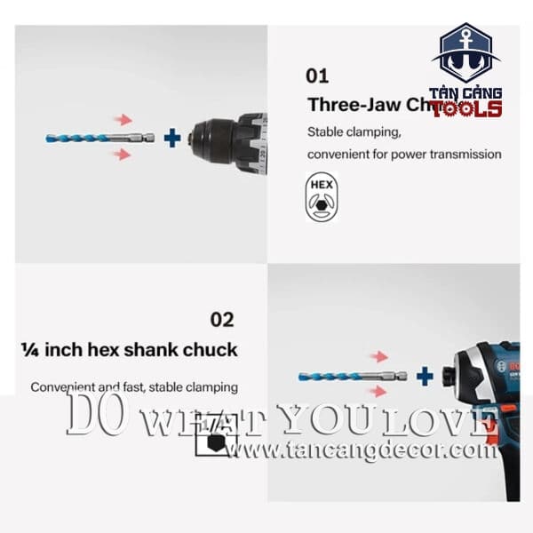 - Mũi khoan đa năng chân lục giác ngắn sử dụng các dòng máy vặn vít thông dụng