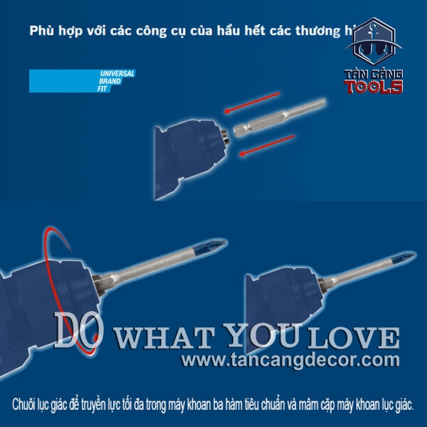 - Mũi khoan đa năng chân lục giác ngắn sử dụng các dòng máy vặn vít thông dụng