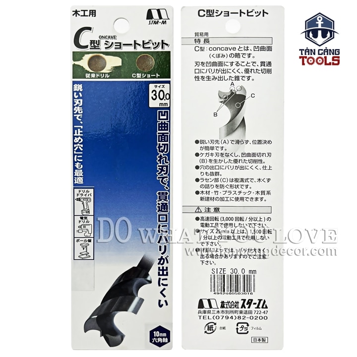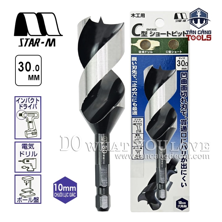 Mũi Khoan Gỗ Star M 30mm Bước Thưa Ngắn Chuôi Dài Lục Giác Series 1 – 1 Mũi