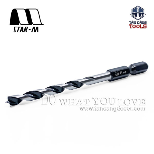 Mũi Khoan Gỗ Star-M 6mm Bước Thưa Ngắn Chuôi Dài Lục Giác – 1 Mũi