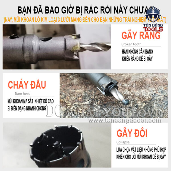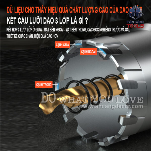 - Sản phẩm được trang bị lưỡi dao 3 lớp tăng khả năng khoét, giảm thời gian gia công.