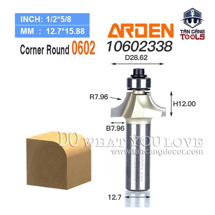 Mũi Router Arden Bo Góc R7.96 Cốt 12.7 mm Arden 0602 Corner Round Bit