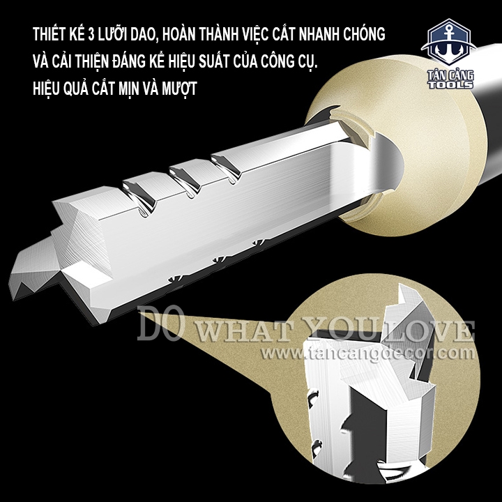 - Thiết kế cắt ba lưỡi đồng tâm , khe thoát nhiệt cho khả năng làm việc độ chính xác trong môi trường làm việc cường độ cao.