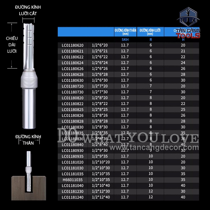 - Sử Dụng Cốt Máy Phay 12.7 mm.