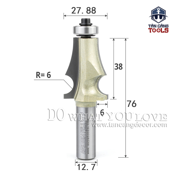 Mũi Router Arden Đánh Chỉ Chữ A 38 x 27.88 mm Cốt 12.7 mm Arden 0908A