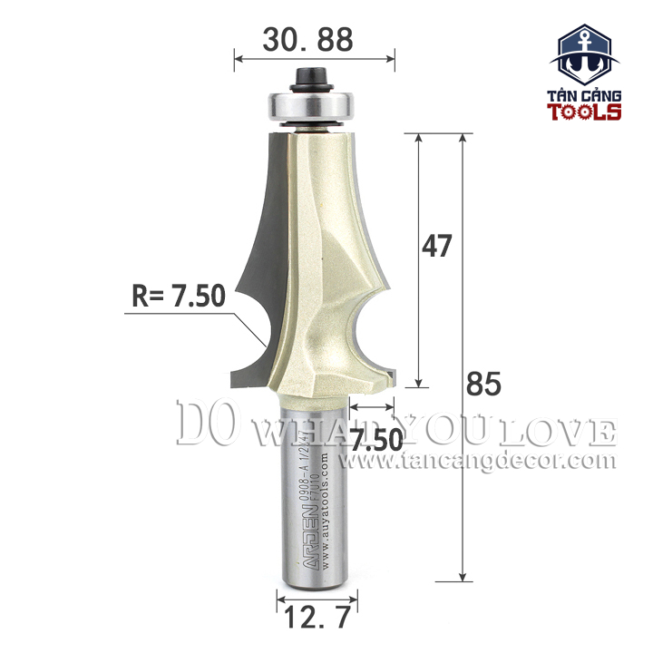 Mũi Router Arden Đánh Chỉ Chữ A 47 x 30.88 mm Cốt 12.7 mm Arden 0908A