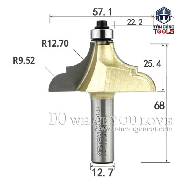 Mũi Router Arden Đánh Chỉ Chữ S R9.52 x R12.7 mm Cốt 12.7 mm Arden 0808