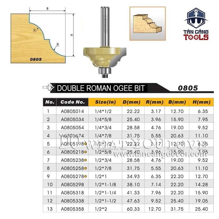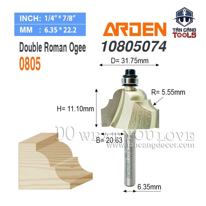 Mũi Router Đánh Chỉ Cổ Điển 0805 Arden 11.1 x 31.75 mm Cốt 6.35 mm