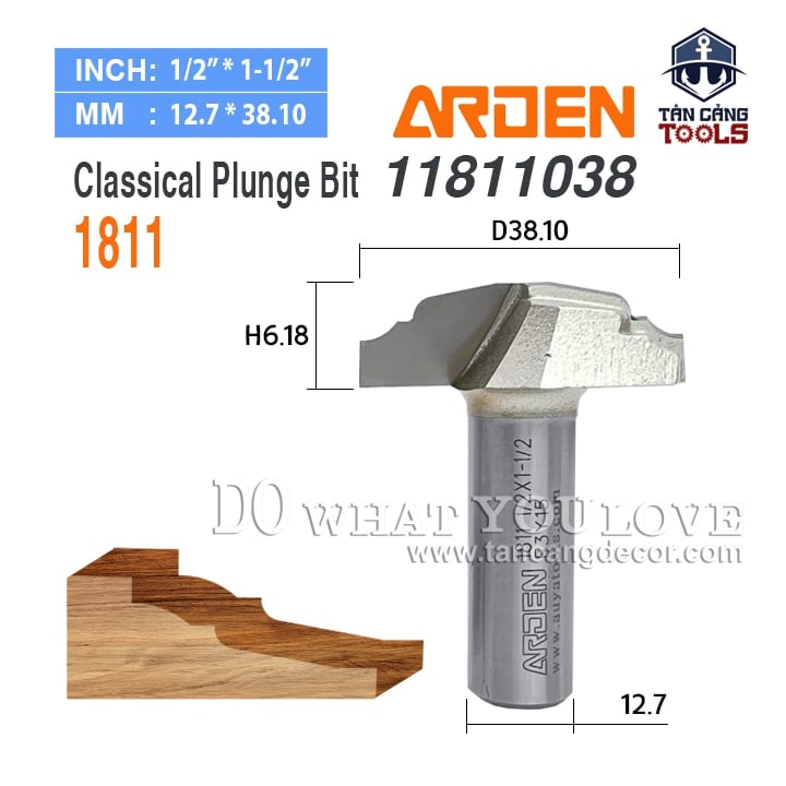 Mũi Router Đánh Pano Tủ 1811 Arden 6.18 x 38.1 mm Cốt 12.7 mm