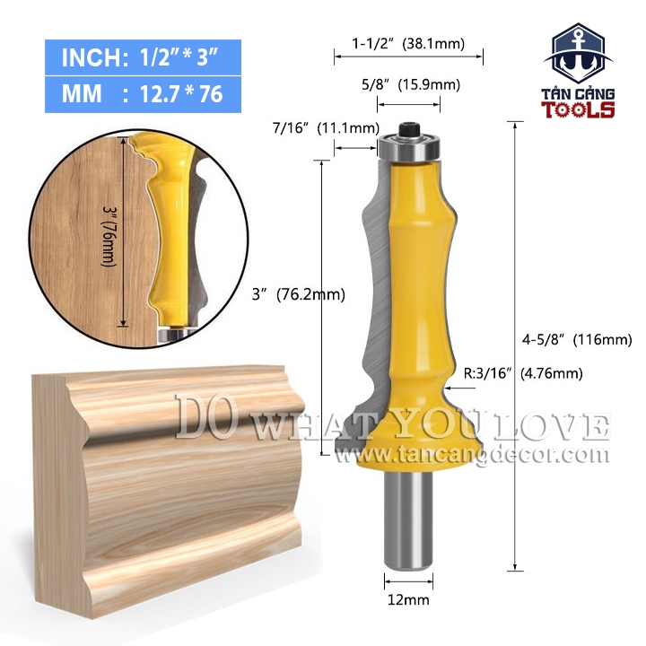Mũi Router Đánh Phào Chỉ Chân Tủ 76.2 mm Cốt 12.7 mm
