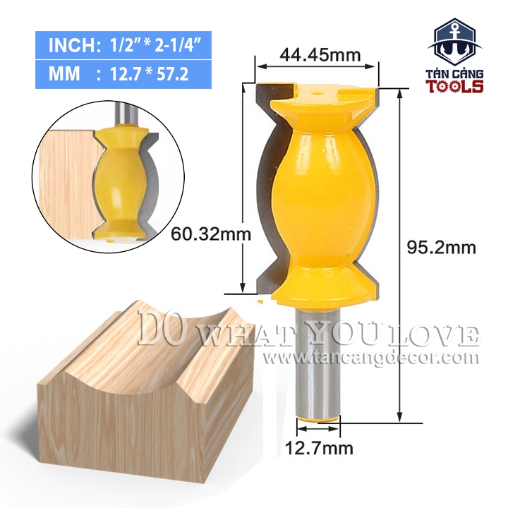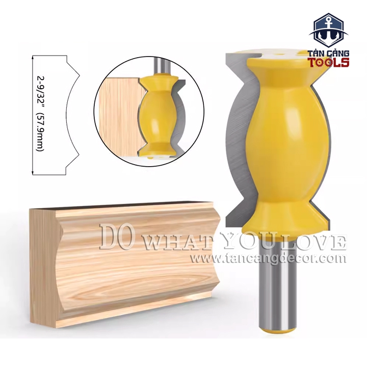 - Mũi Router Đánh Phào Chỉ Lõm Đối Xứng 60.32 mm Cốt 12.7 mm.
