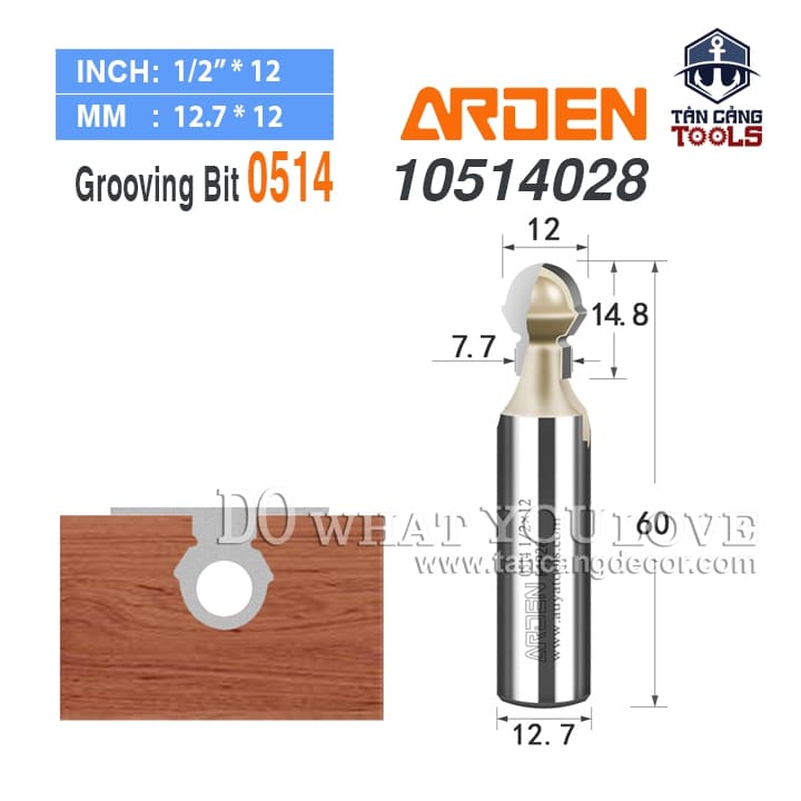 Mũi Router Đánh Rãnh Thanh Chống Mo Arden 12 x 14.8 mm Cốt 12.7 mm
