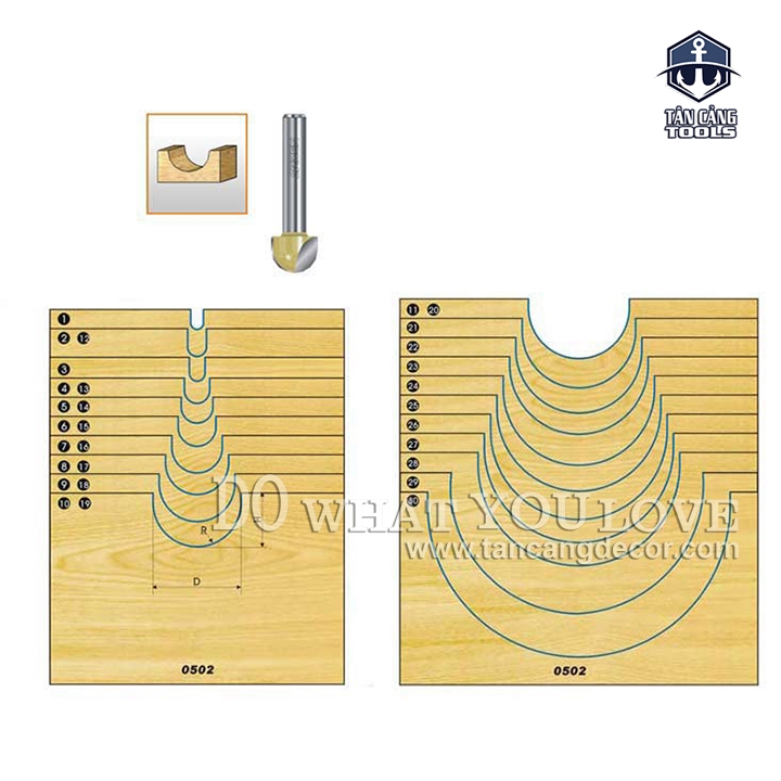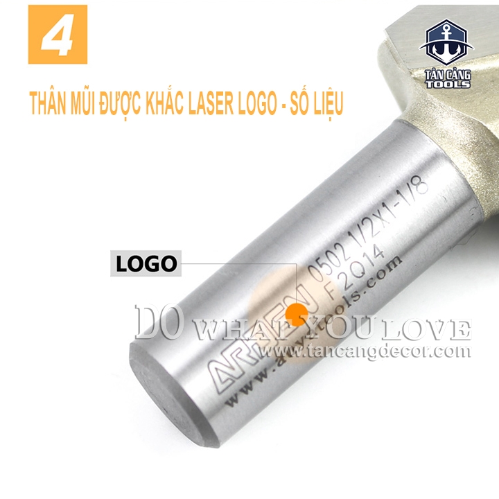 - Mũi Router Đánh Rãnh Tròn Arden 0502 Góc 34.9 mm Cốt 12.7 mm.