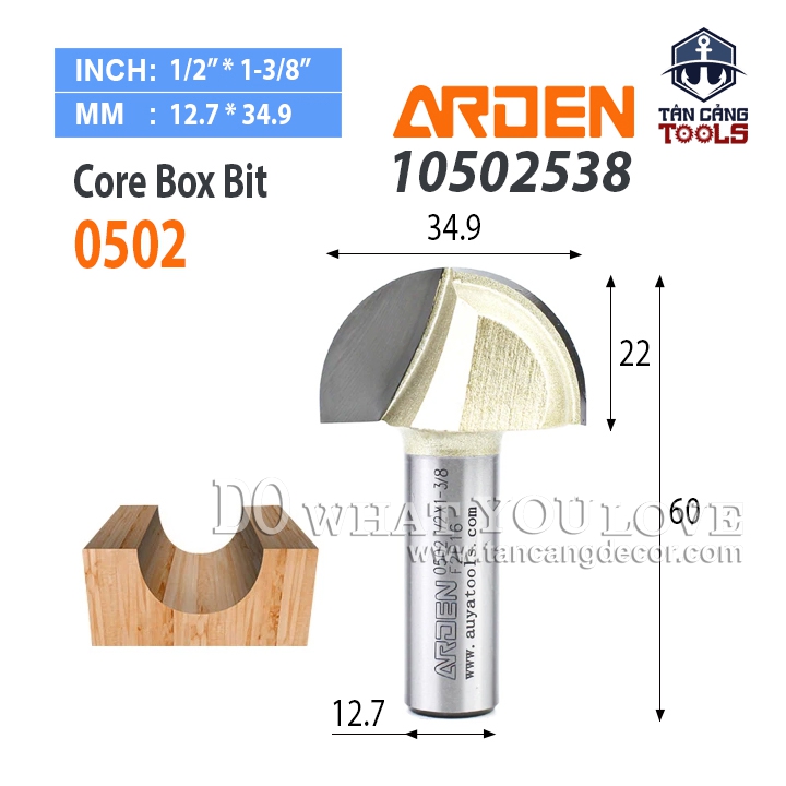 Mũi Router Đánh Rãnh Tròn Arden 0502 Góc 34.9 mm Cốt 12.7 mm