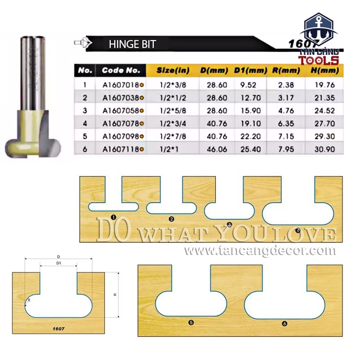 - Dòng sản phẩm: 1607 – Arden Hinge Bit
