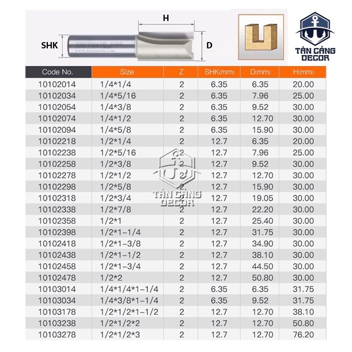 - Mũi Router Arden Móc Rãnh 20 x 6mm Cốt 6.35 mm Arden 0114.