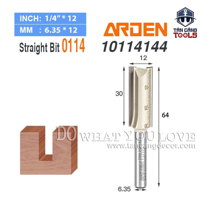 Mũi Router Móc Rãnh Arden 30 x 12 mm Cốt 6.35 mm